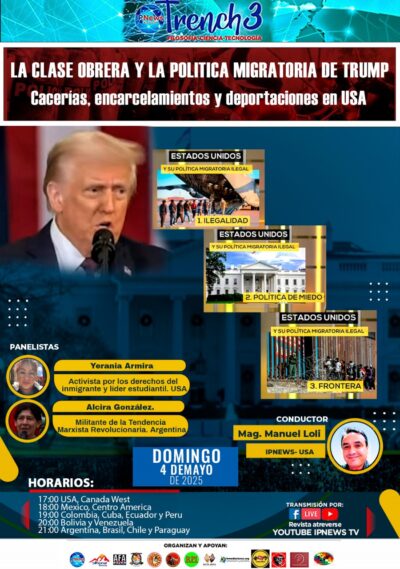 Frente a esta ofensiva, el gobierno de Donald Trump ha enfilado sus ataques específicamente contra la clase obrera inmigrante con el objetivo de sembrar el odio en la sociedad norteamericana y así poder controlarla en beneficio de la oligarquía que el representa. Para analizar estas cuestiones, contaremos con la participación de destacados panelistas que abordarán las raíces políticas y económicas de la política migratoria de Trump, así como sus consecuencias para los trabajadores y la lucha de clases.